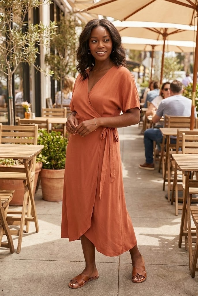 Wrap dresses always understand curves. They adjust easily and highlight the waist without feeling tight. I love how they move when you walk and how comfortable they feel when you sit.
