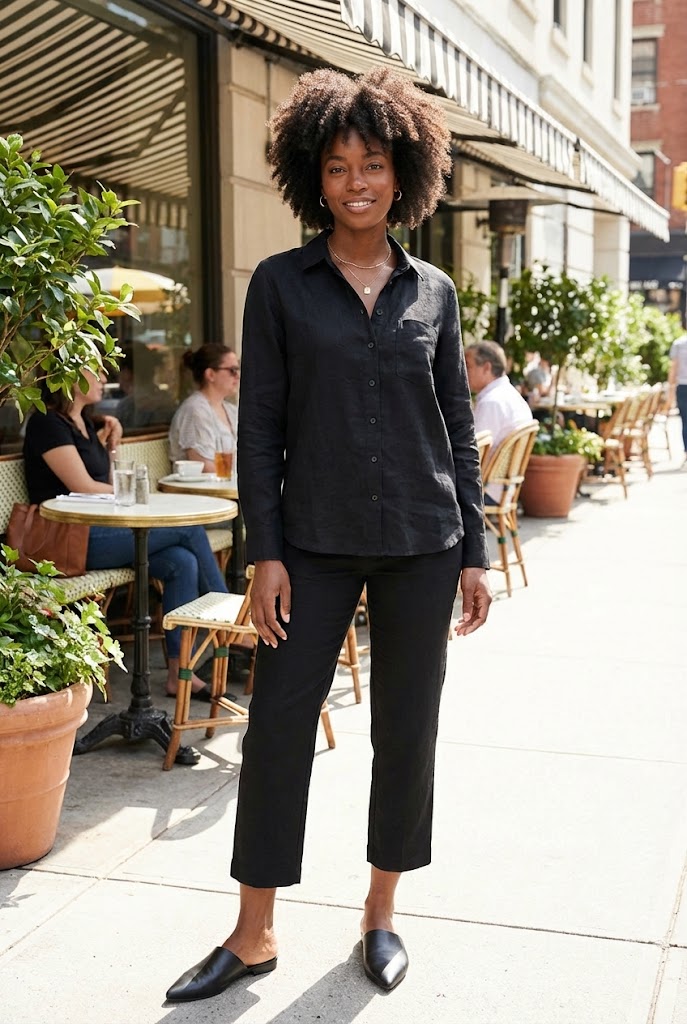 This combo never lets me down. I grab it when my brain refuses to function before 11 a.m. A loose button-down gives breathing room, and straight jeans keep things clean without feeling stiff.