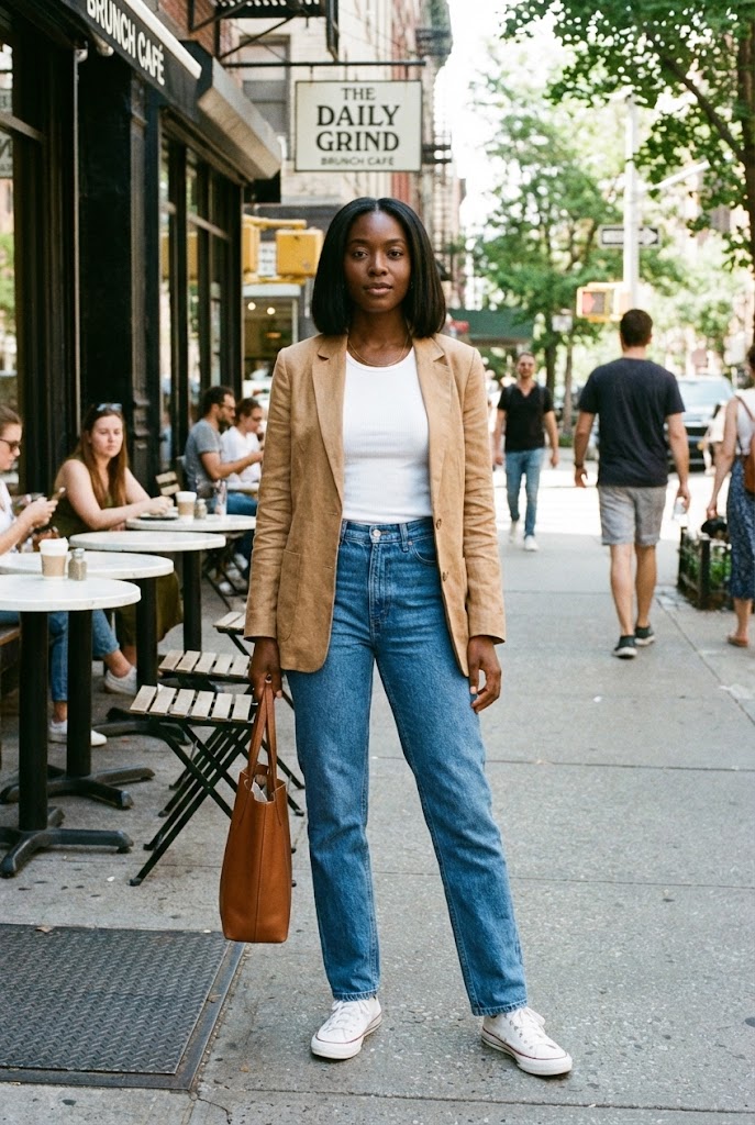 I reach for this when brunch turns into errands. A casual blazer instantly sharpens a simple tank and denim combo.