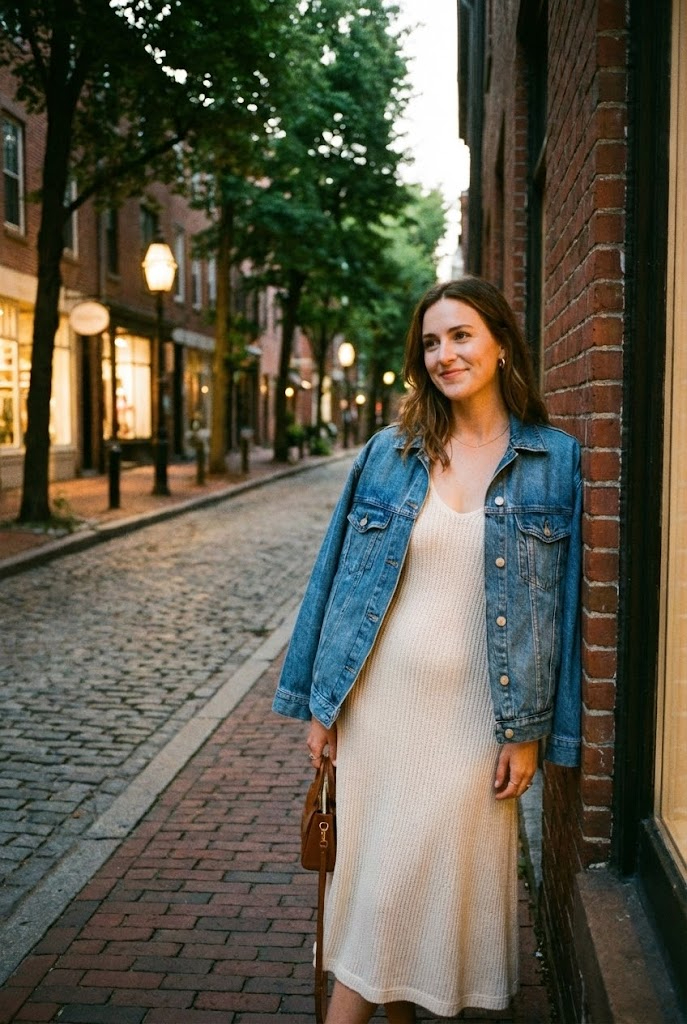 5. Denim Jacket Over a Soft Dress