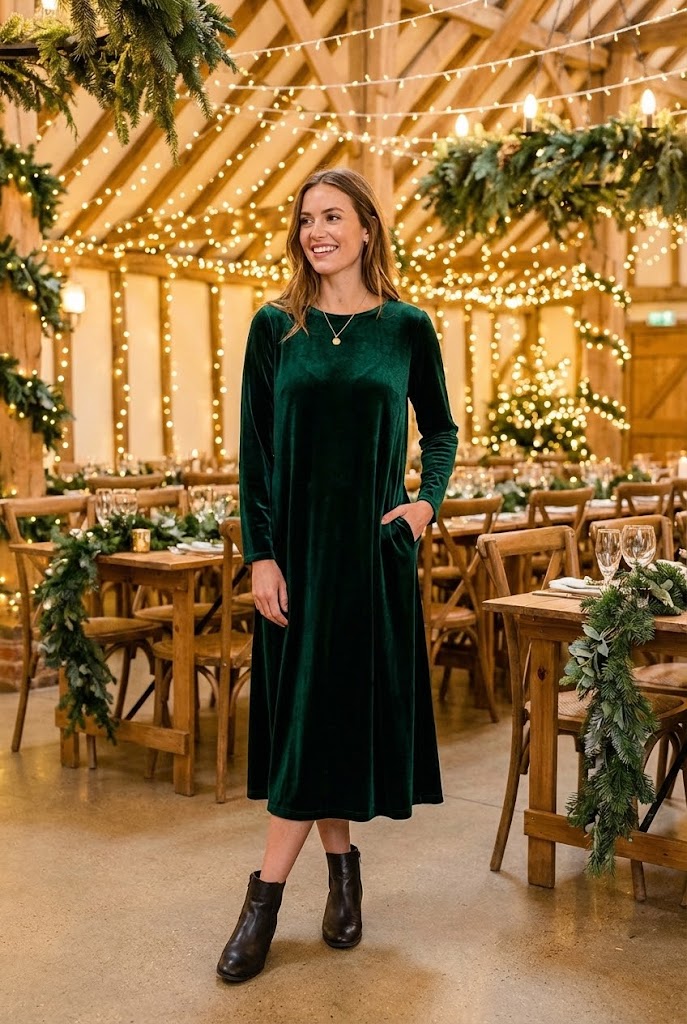 Velvet does most of the work for you. Even a simple design looks special once velvet enters the picture. I wore a velvet midi to a winter wedding and felt dressed up without trying too hard.