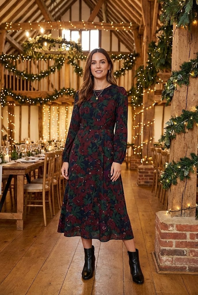 The midi length keeps things polished without looking stiff. Long sleeves save you from piling on layers that ruin the outfit. This dress works beautifully with ankle boots or block heels, which makes styling simple. Ever noticed how this style always looks appropriate, no matter the crowd?