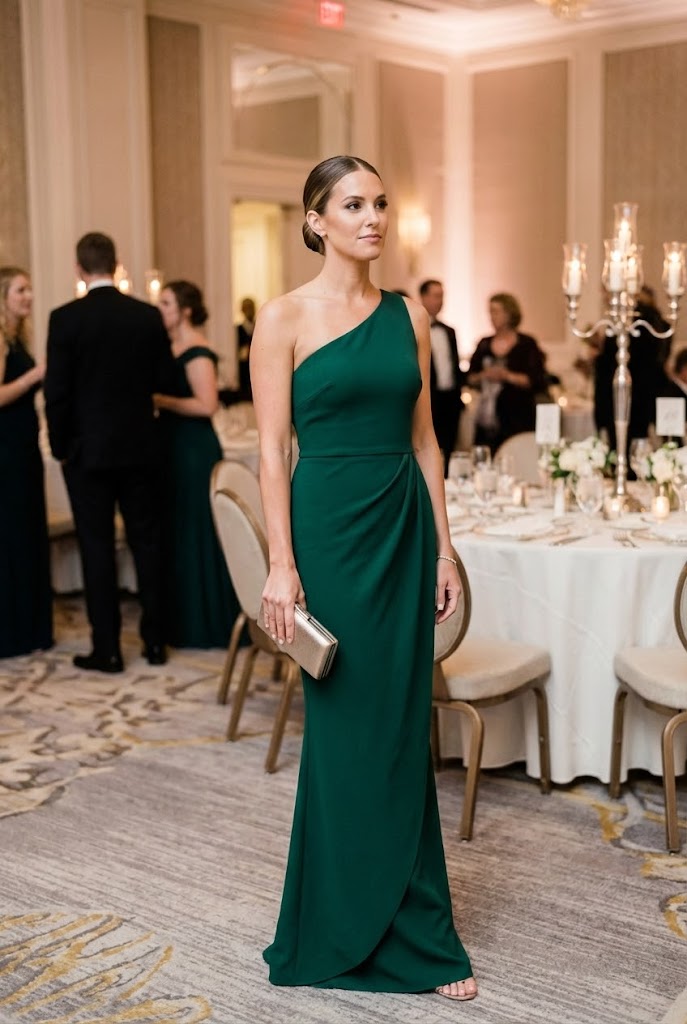 One-shoulder dresses strike a perfect balance. They feel current without being loud. I choose this style when I want something different that still feels appropriate.