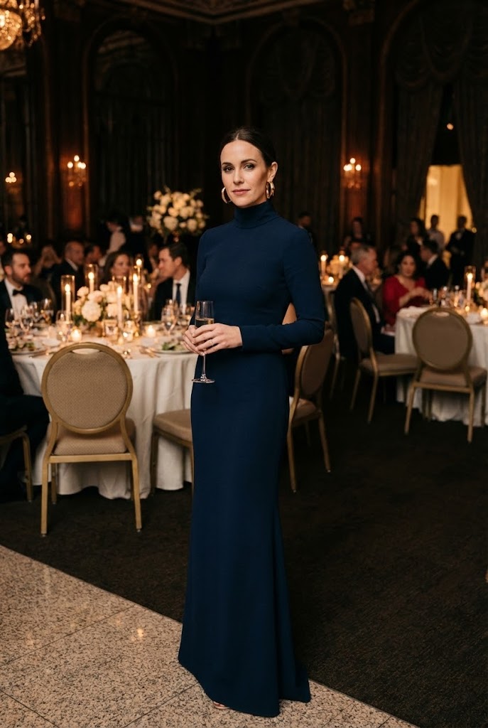 High-neck dresses feel powerful in a quiet way. They don’t rely on skin to make an impression. When I want to feel fully put together from start to finish, this is my pick.