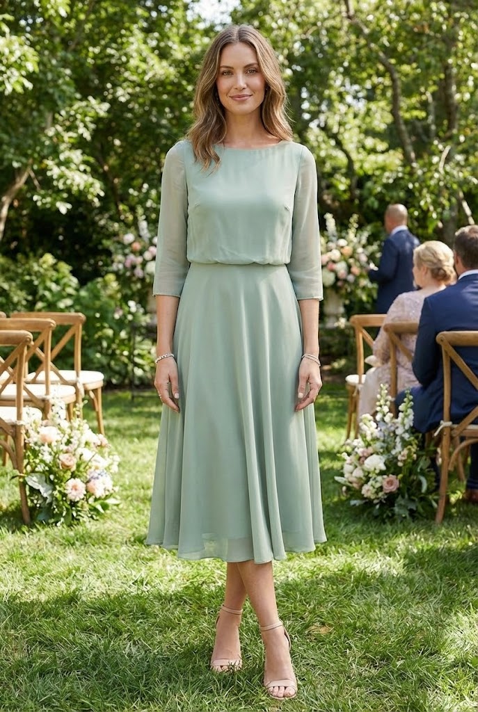 A chiffon cocktail dress with sleeves solves two problems at once. It offers coverage and keeps the outfit light. The fabric flows naturally and feels gentle on the skin.