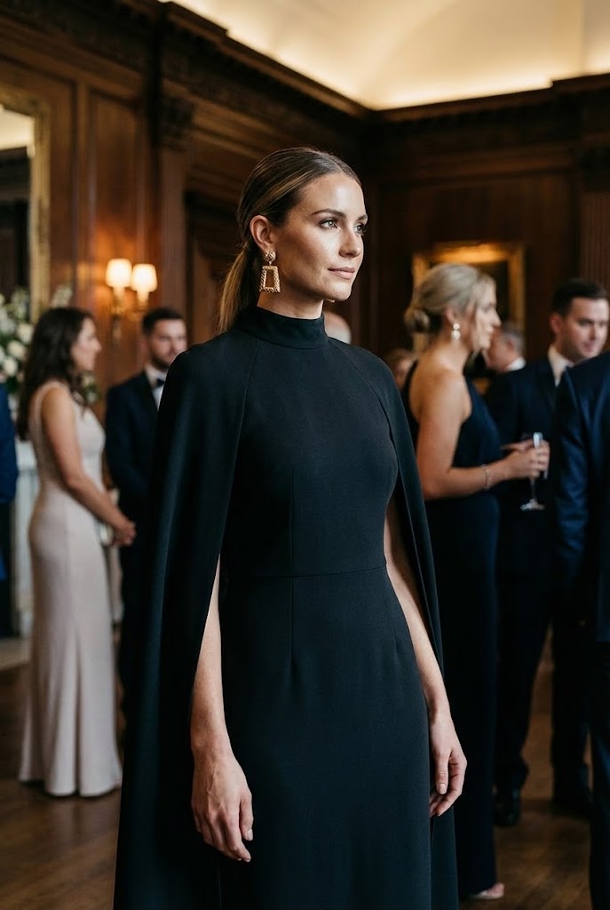 A structured cape dress solves two problems at once. It keeps you warm and makes you look powerful. I tried one last winter and felt instantly put together, even before hair and makeup.