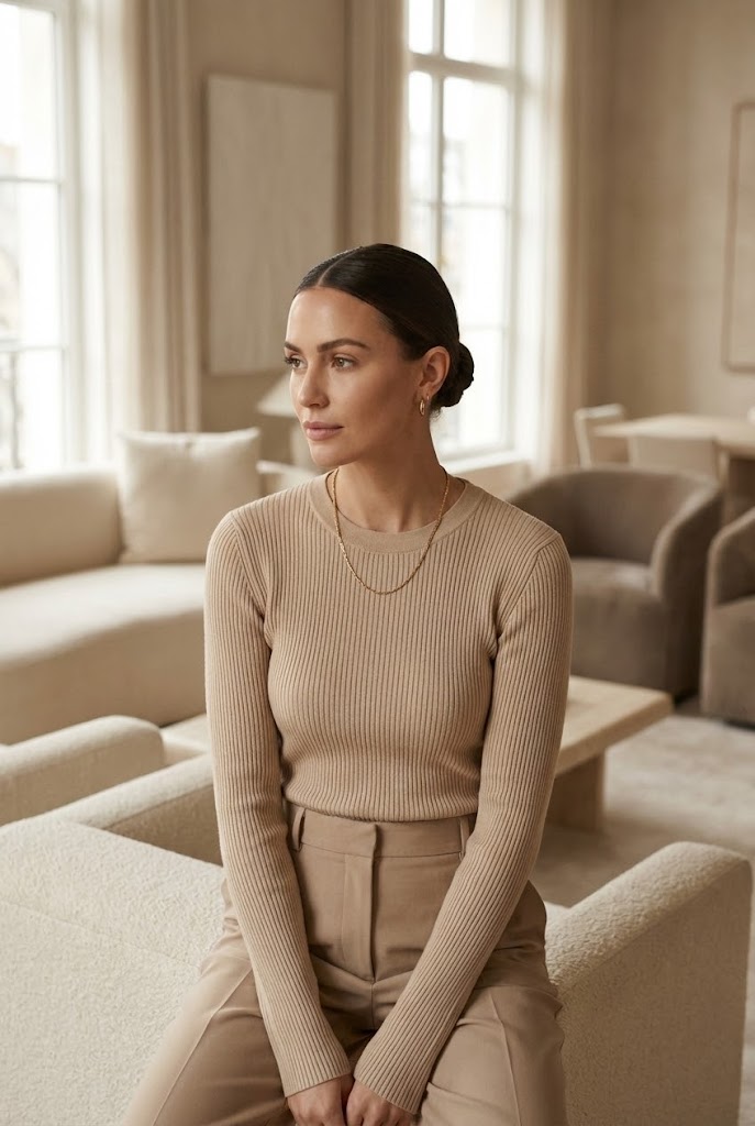 Monochrome outfits always look expensive. Beige, cream, or soft taupe work best here.